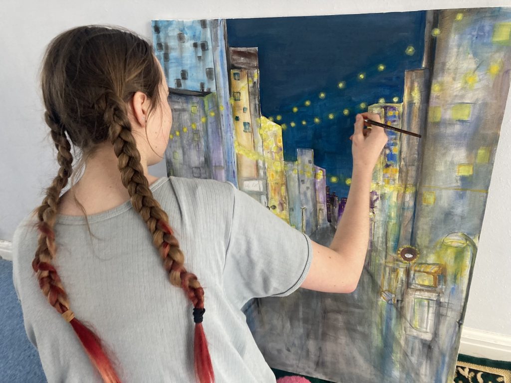As she has grown, so too has her artistic voice. Her recent work marks a confident shift towards a more personal and distinctive style, exploring colour in bolder, more expressive ways. Through experimentation and a developing sense of individuality, she is beginning to define her own visual language.